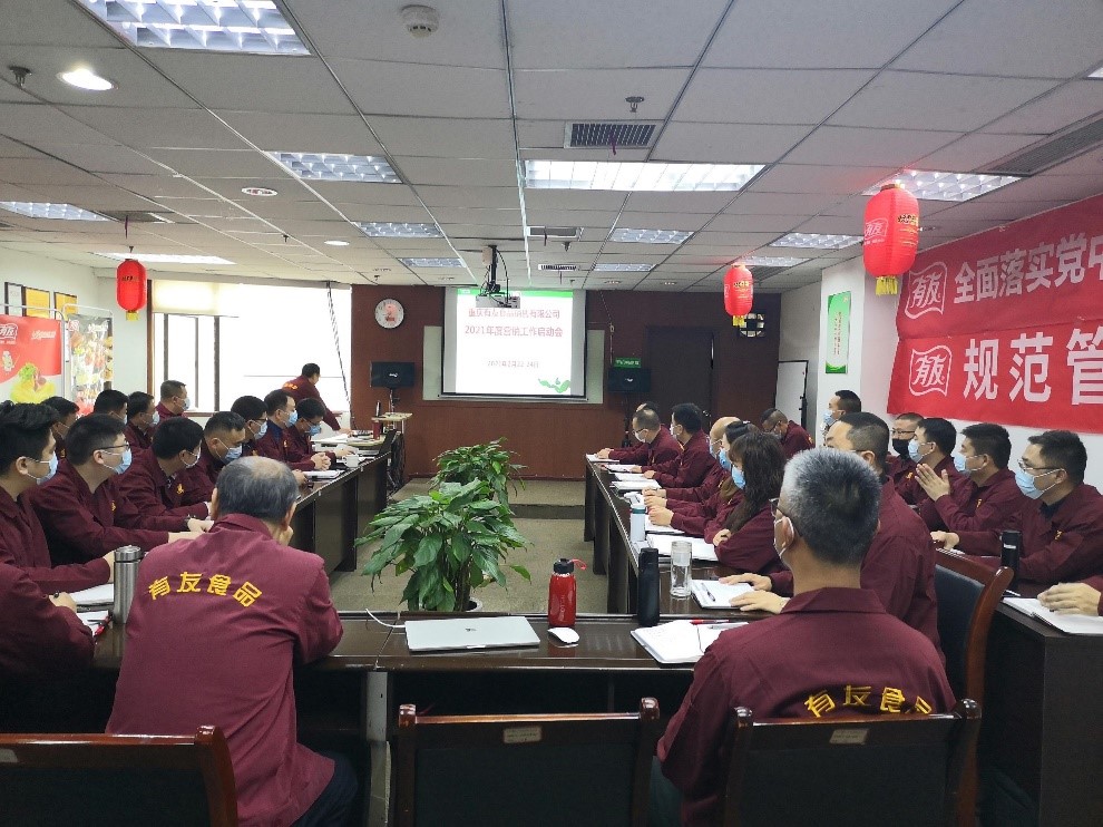 启动会上,鹿有忠董事长回顾了有友二十多年的发展历程,特别是近十年在不断规范中做企业、做市场,虽受外部各种因素影响,但我们整体经营稳中有升,不断向好,同时我们还在不断规范中积蓄能量。2021年是我们突破的关键期,全体人员要统一思想、勤奋工作、创造价值,特别是结合城市画像,精耕市场渠道,优化客户服务,提升团队作战能力,在完成年度计划目标的基础上力争实现挑战目标。会上,公司领导针对各区域的营销状况有针对性的作了分析总结和安排部署。